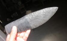 A true Black Beauty. Large hefty Arizona basalt one piece knife with handle wrapped with black deer leather. Would last a life time.