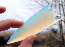 Made from man made opalescent glass, this material is neat in the sunlight as it shifts color from blue to orange. |