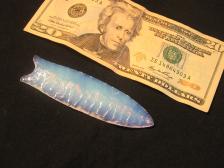 As you turn the point in the light, the colors shift and change from an intense, iridescent blue , to reddish orange, then a blazing yellow.