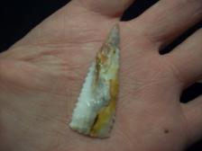 I Knapped this point out of some OpalizedWood from Nevada.Its a unnotched Cohokia Point. Beautiful. Thanks for your interest and have a good day. |