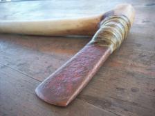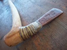a replica of the axe found with Otzi, the 4500 year old mummy found frozen in the Alps. cast copper head fixed in a willow handle with pitch, rawhide, and hide glue.