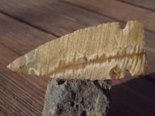 This point was pressure-flaked from a purchased slab of Owyhee jasper. |