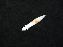 Fine little Kilickitat dagger point made from Oregon Paiute agate. Nice white agate and slightly translucent towards the tip with just a slight bit of a nice orange/red color in the middle. Really pretty piece of agate. Very finely flaked and delicate! |