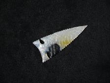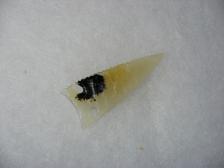 Cool looking western side notch point made from Oregon Paiute Agate. Pretty translucent agate with a tint of yellow and one nice big black dendrite formation in it.