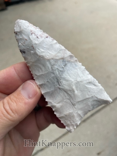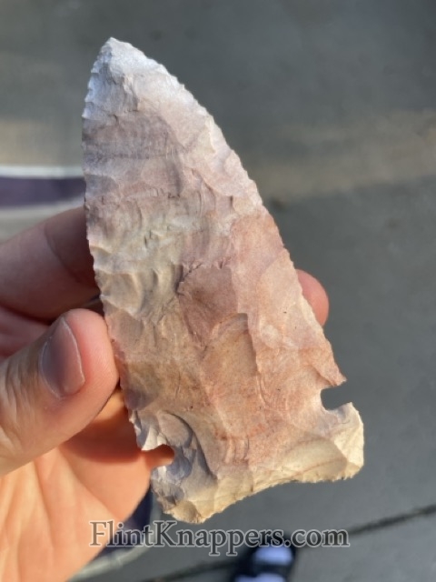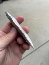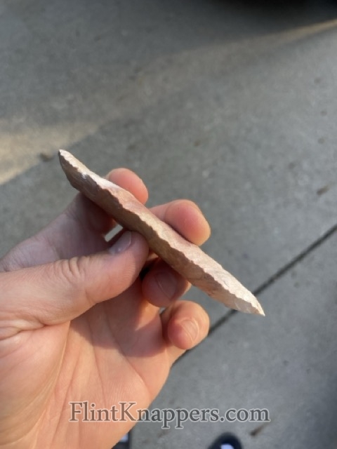 A paleo blade made from (Avon?) Burlington. This has a nice flaking pattern on both faces.