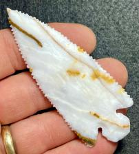 I love polka dot Agate from Madras Oregon and this point looks eloquent made from it. It is style after the Palmillas points.