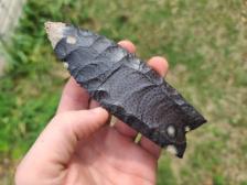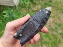A nice flaked and fluted palmwood clovis.