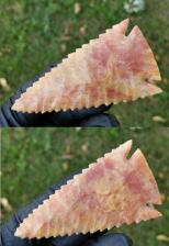 Knocked out over the course of yesterday evening, this one took quite awhile! Very well made Corner-Notch, with excellent flaking on both faces, great symmetry, killer forward facing serrations, and nearly perfectly balanced. Either face could be the A-side on this one, truly. In a stunning example of Pasco Agatized Coral! Everything from the excellent preservation (the detail is insane), gorgeous coloration, translucency. and glossy luster makes this piece stand out and above the rest! Im excited to offer this fine point for sale to the collectors on flintknappers.com! Diamond scribed as always, and upon request signed in archival ink. This point will not disappoint!