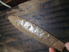 a large agate basin, worked from a long narrow tab of pedernales flint. worked with antler percussion, copper indirect and pressure. |