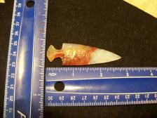 I Knapped this point out of some Perona Agate from Brazil. Nice point, the clear didn't gloss out as much as the coler. Beautiful point.Thanks for looking today and have a good week. Will combine shipping. |