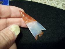 I Knapped this biggame point out of some Perana agate.Beautiful material.This point was a large thick spall flake,hard to come by. Thanks for looking and have a good day. |
