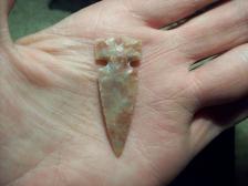 I Knapped this tri notch style point out of some Coprolite from Utah. Nice coler and translucent. Thanks for your interest and have a good day. Will combine shipping. |