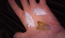 I knapped these 3points out of petrified wood.the yadkin style point is henry mnt wood and the tang and corner notch are Cisco white wood.awesome material.thanks for your time and have a safe day. |