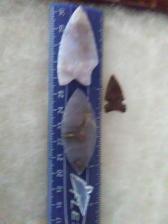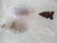 I knapped the bigger point's out of petrified wood from Cisco Utah area,beautiful blue Sandia style the by point is from same spot.the little trinotch is mcelmo wood and a small clear Montana agate cornertang,if you can see it.thanks for your time and have a good day. |