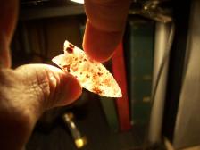 I Knapped this point out of some Syco PigeonBlood agate from The famous Floy Wash Utah area.Beautiful Material, and fun to look threw. Thanks for your trust and confidence and have a good day.Will combine shipping. |