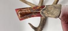 Silversheen Obsidian blade with Fordite cast in resin handle |