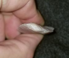 Here is another Dalton made by Don Hoffner. This time it is made from the pink variety of Novaculite. This piece was made to resemble an ancient one from his personal collection. This one is quite twisted from all of the resharpenings! |