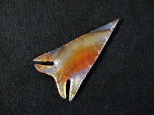 Nice wide desert Elko point knapped from pretty banded Piranha agate.