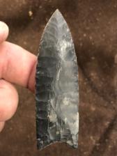 This Plainview is made from a nice piece of James River Chert. Colors include black and gray. Lateral dulling. A great piece.