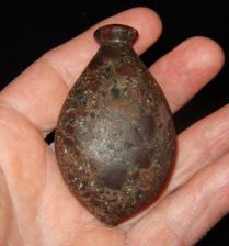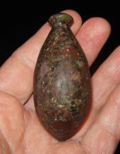 Knobbed plummet out of a colourful conglomerate that was found in Clapboard Cove, Maine. |