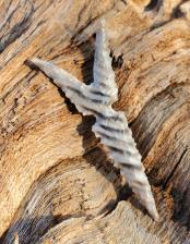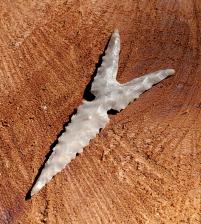 If you like delicate miniature arrowheads, then you will love this one. In California I have seen prehistoric points even smaller than this one in museum collections. Even with its small size, it has been signed and dated using a diamond tipped scribe. Plus, the banding of the Polish Flint is very strong on one side, adding great character to this point.