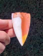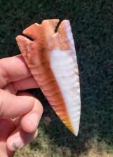 Here is a large polka dot Elko point forsake which displays beautiful color contrasts and great flake patterns. 4 and 3/8s long |