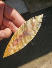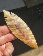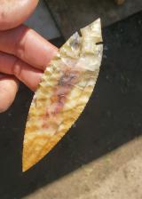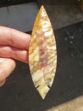 Here is some super nice polka-dot agate flaked into a turkey tail. Very symmetrical with great colors. Thanks for viewing |