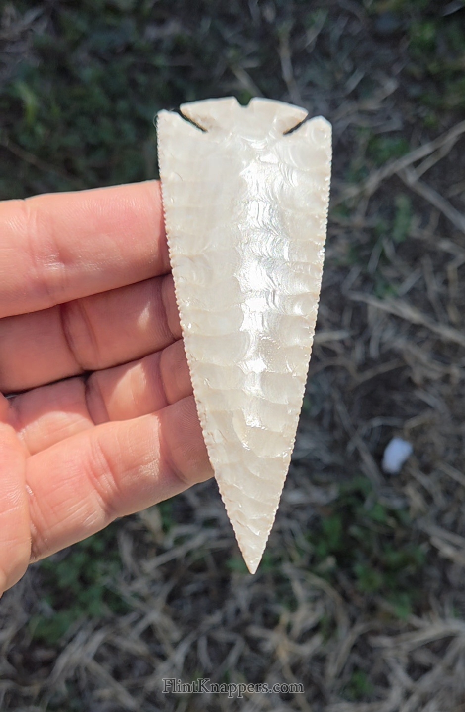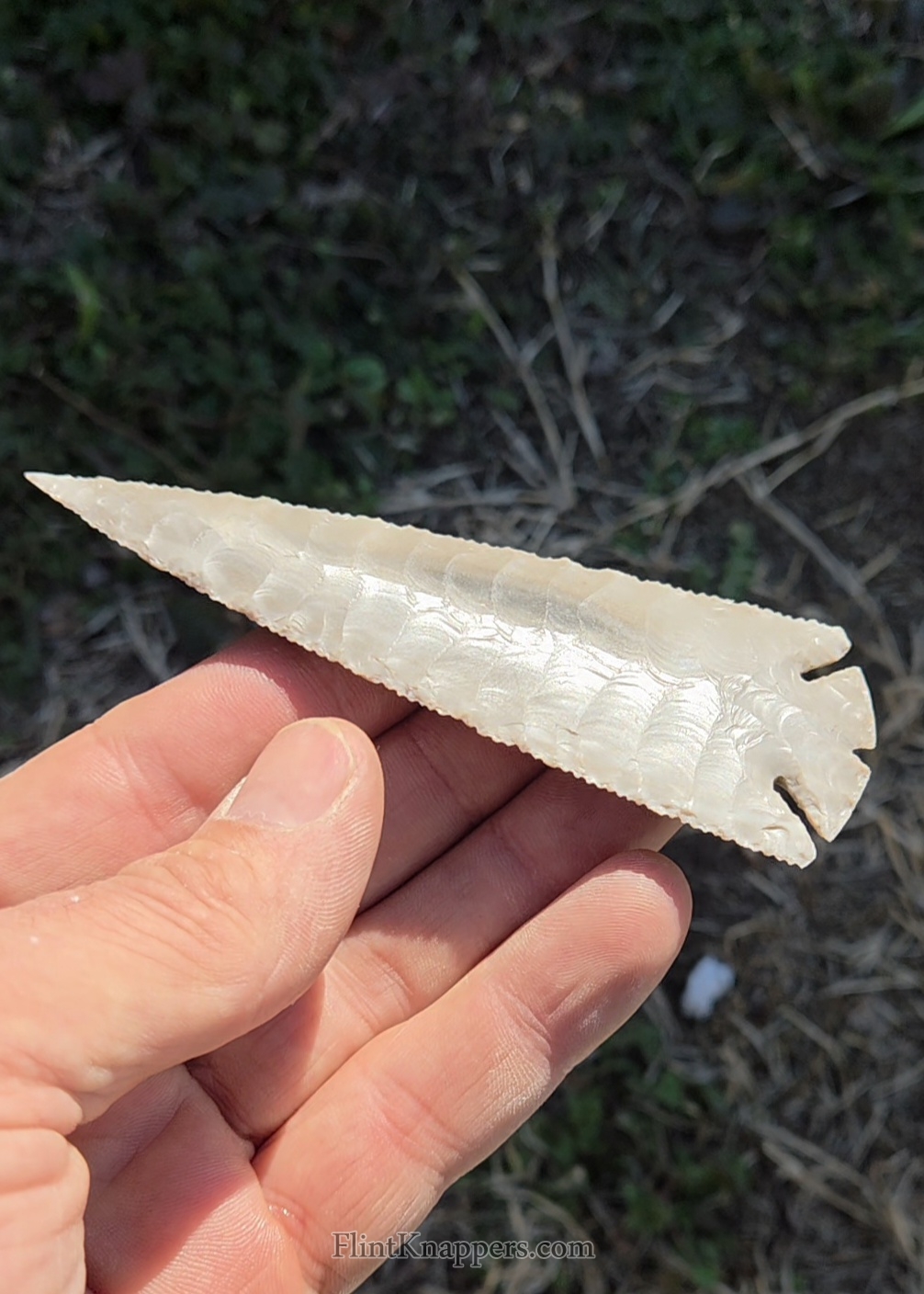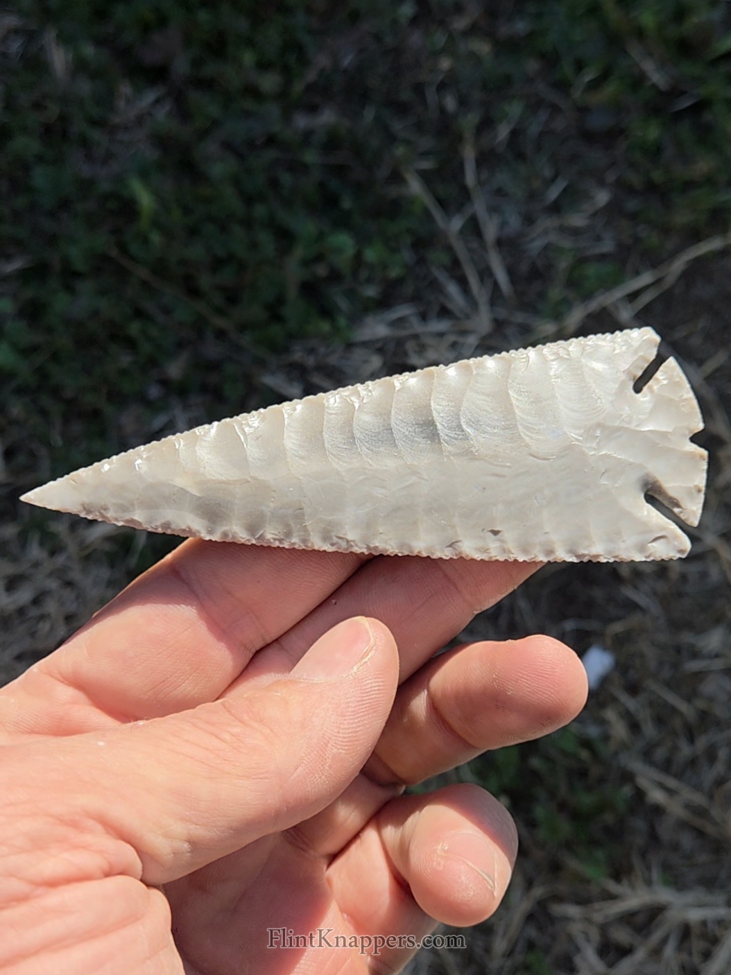 Here is a beauty! 4 and 3/4 long turkey tail that has great flake patterns and super thin serrated edges. Thanks for viewing |