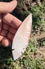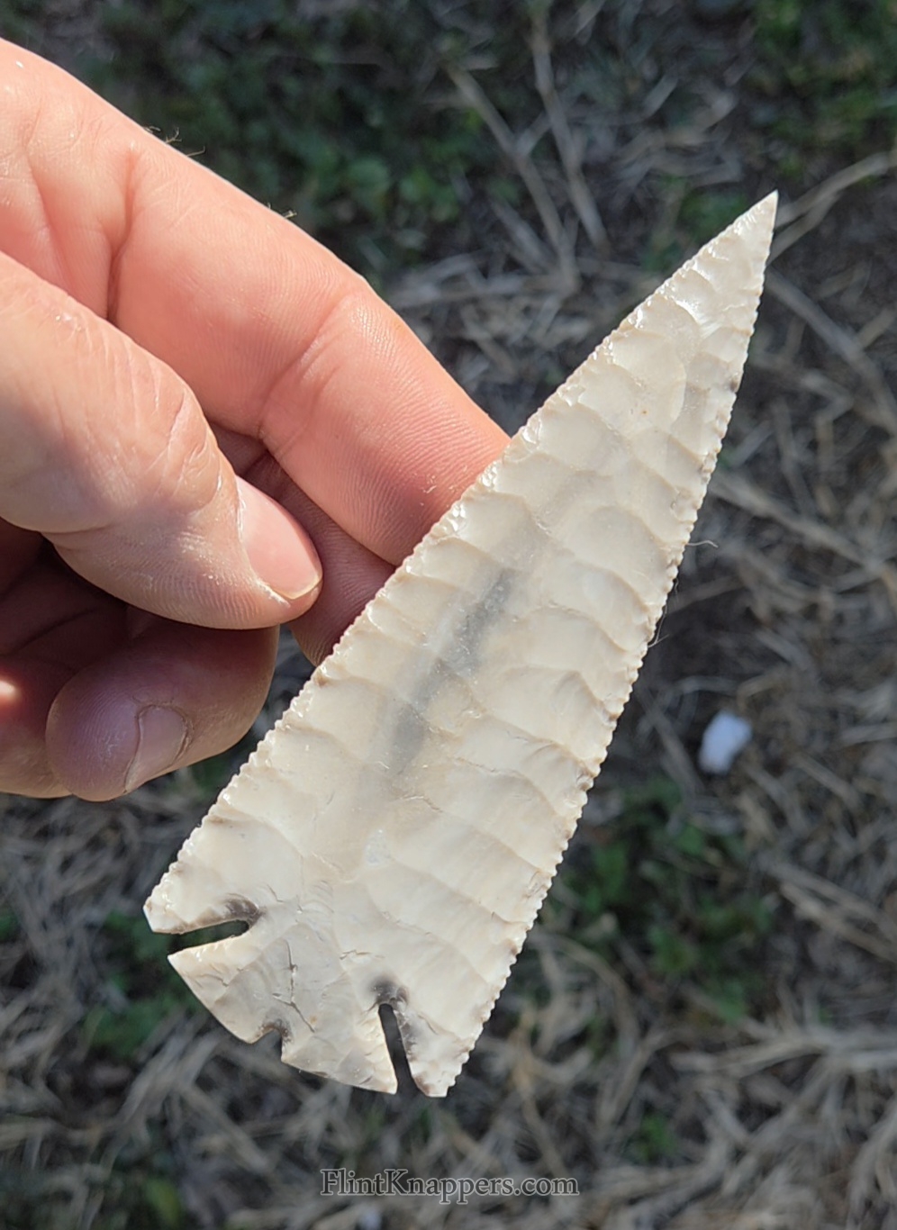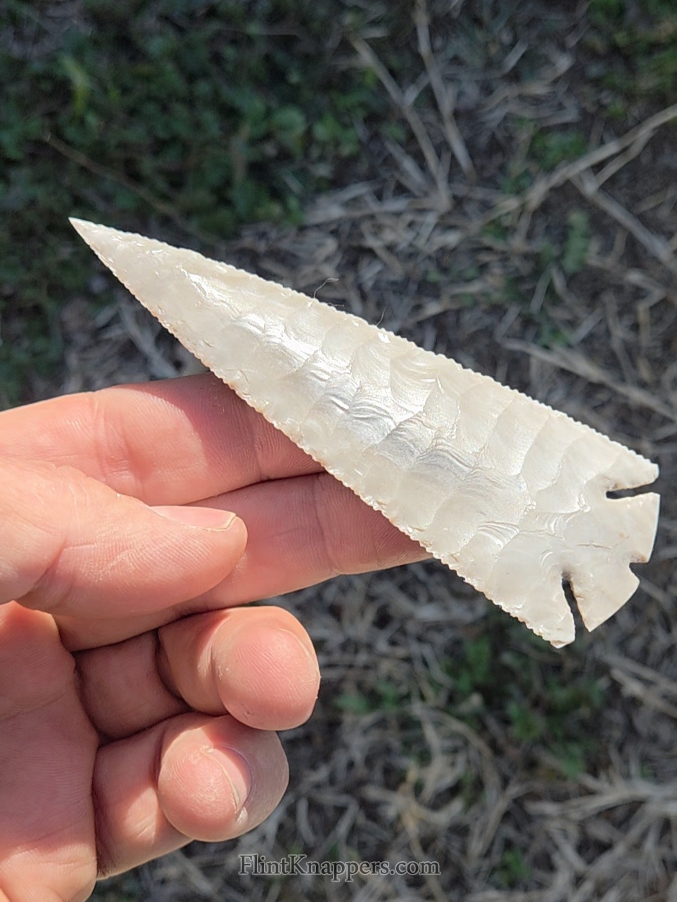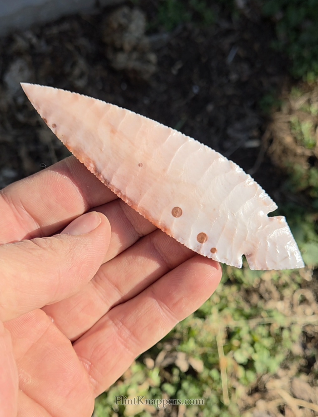 Here is a beauty! 4 and 3/4 long turkey tail that has great flake patterns and super thin serrated edges. Thanks for viewing |