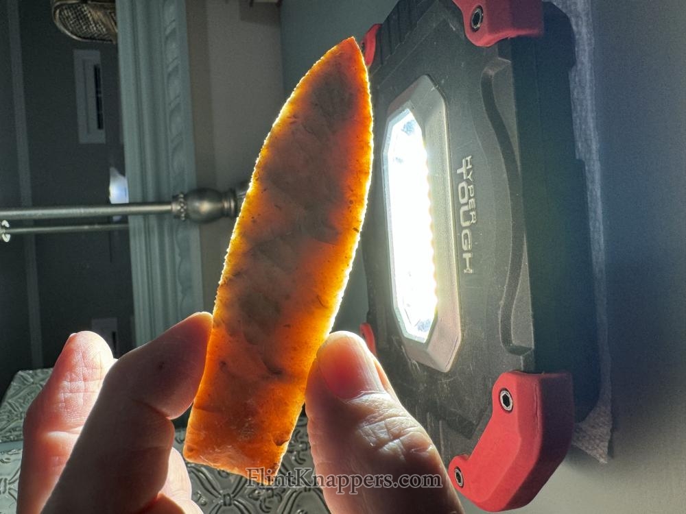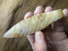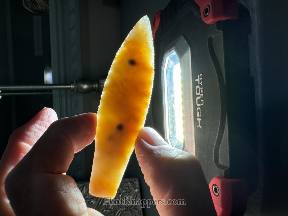 Polkadot agate from Oregon. One of the last pressure flakes on one side revealed a tiny crystal pocket. |