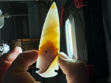 Made from beautiful semi translucent Polkadot Agate from Oregon! Nice oblique flaking and serrated sharp. Thanks for looking! |