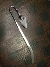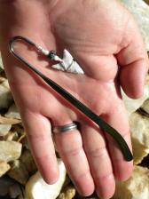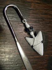 For this decorative and yet functional six inch long bookmark, I wire wrapped the white novaculite arrowhead along with a snowflake obsidian bead and two smaller white  glass beads.  I have also signed and dated the side notched point.