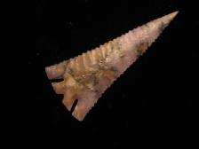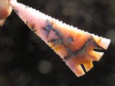 I was digging through some of my rock and to my great surprise found a piece of Nevada purple sage agate I had squirreled away. I didn't know I had any of this left and now its quite hard to find. Its purple in hue with beautiful dark dendrites streaking around through it as the pics show. The point I chose to make out of it is modeled on an original Elko find from SE Oregon with squared barbs and a base exactly like this one. I don't have any more of this material that I know of. Wish I did.... |