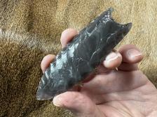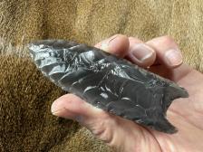Made from beautiful rainbow obsidian! Shown in the sunlight held at an angle to display the color. Hafting area is ground, serrated sharp, thanks for looking! |