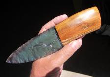 WOW!! real flashy teal and purple Davis Creek obsidian percussed blade set into polished iridescent osage hardwood and finished with braided waxed flax. BLING CITY!!!!!