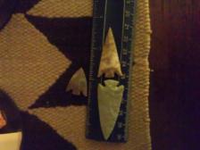 The colorful ones are rare California petrified wood. The big point is triangle chert.awesome threesome.thanks for your time and have a good day. |