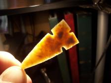 I Knapped this Point out of some Verry Rare Cycad core From Southwest Colorado area.Now part of canyon of the ancients national park.Going threw rock pile yesterday and found one little chunk that i had forgoten about.So far i havnt found anymore.When held up you can see a growth patern and spray patern.Outstanding material, didnt even need treated.Thanks for your time and have a good day. Will combine shipping. |