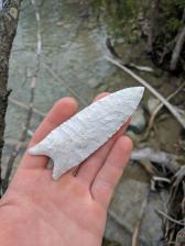 All abo Dalton, antler percussion, and all the pressure flaking done with about a 4" little antler tine. I didn't need to go to the gym because this piece of raw harvester was tough. Those blisters are all from the making of this point as well