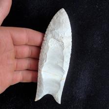 A well made Clovis made from a spall of raw Burlington Chert. Fluted with a solberger jig
