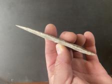 Antler punch over sandstone hammerstone. Antler punch stem very tough but durable stone. |