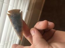 Raw Flint ridge calcedony corner red blue and yellow with red tip |