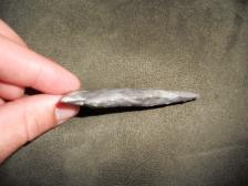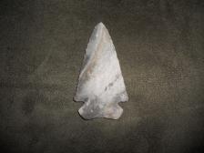 This dovetail was knapped from a piece of un-heat treated harvester chert from missouri. The blade was chipped using hammerstone percussion and then beveled slightly. This is a very clean piece that looks authentic. |