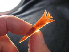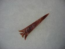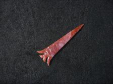 Columbia Plateau styled arrowhead made from dark red to pinkish agate. Real pretty material. Slender, thin and super fine flaking! |