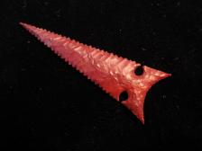 The nice side notch sports expanding notches and serrations. Its made out of red Mookite jasper. Pretty piece! |