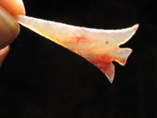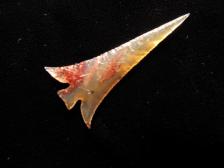 I was looking through some of my rock and found this beautiful clear agate with bright scarlet ed moss in it so this Columbia River style sweep wing point was the result. Wish I had more of this material! |