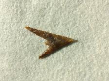 A really nice Rogue River point knapped by Jerry Calvert. The point is made from tan with brown, Washington Columbia River jasper. Jerry ‘9-Fingers’ Calvert is from Arizona and an excellent knapper. Knapped Jan, 2002 |