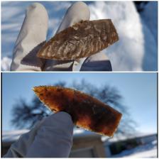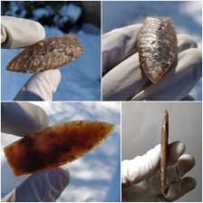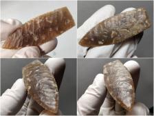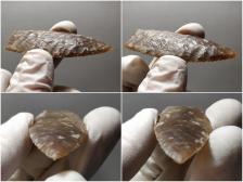 Excellent piece of heat treated Edwards Plateau Root Beer Flint. Very waxy luster. All inclusions are highly silicified, making them as smooth as the surrounding Flint. Exhibits great translucency and color as well. Framed in an awesome spear point. Not a particular reproduction, I just went my own way with this one. Excellent balance, super smooth and regular surface, and nice parallel oblique flaking.