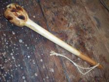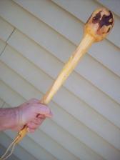 Used for countless millennium all over the world, from Africa to Ireland, this simple yet effective weapon is exactly what the name implies, a club made from the root burl of a tree. In this case it's from the burl of an Italian fig tree (thanks to Jim Cooper). Gorgeously figured and supremely hard, it has excellent balance and heft and just feels right in the hand. |