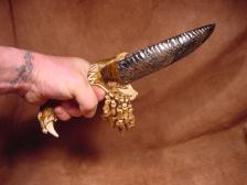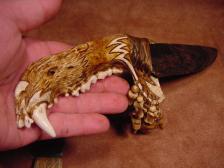 Saber Tooth CAT carved BEAR jaw knife...Hull / Bonecarver |
