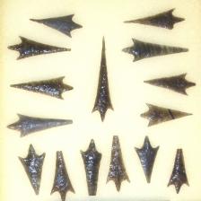 Now for something completely different. This super needle tipped point is a type actually found in the Sacramento Valley in the Redding CA region. I included pics of a batch of originals that were found years ago in the third photo. They were probably internment offerings. This one is made out of Mexican rainbow obsidian but its hard to get it to flash and show in the pic although you can see a bit of a purplish glow in the one pic. Crazy hard to make.